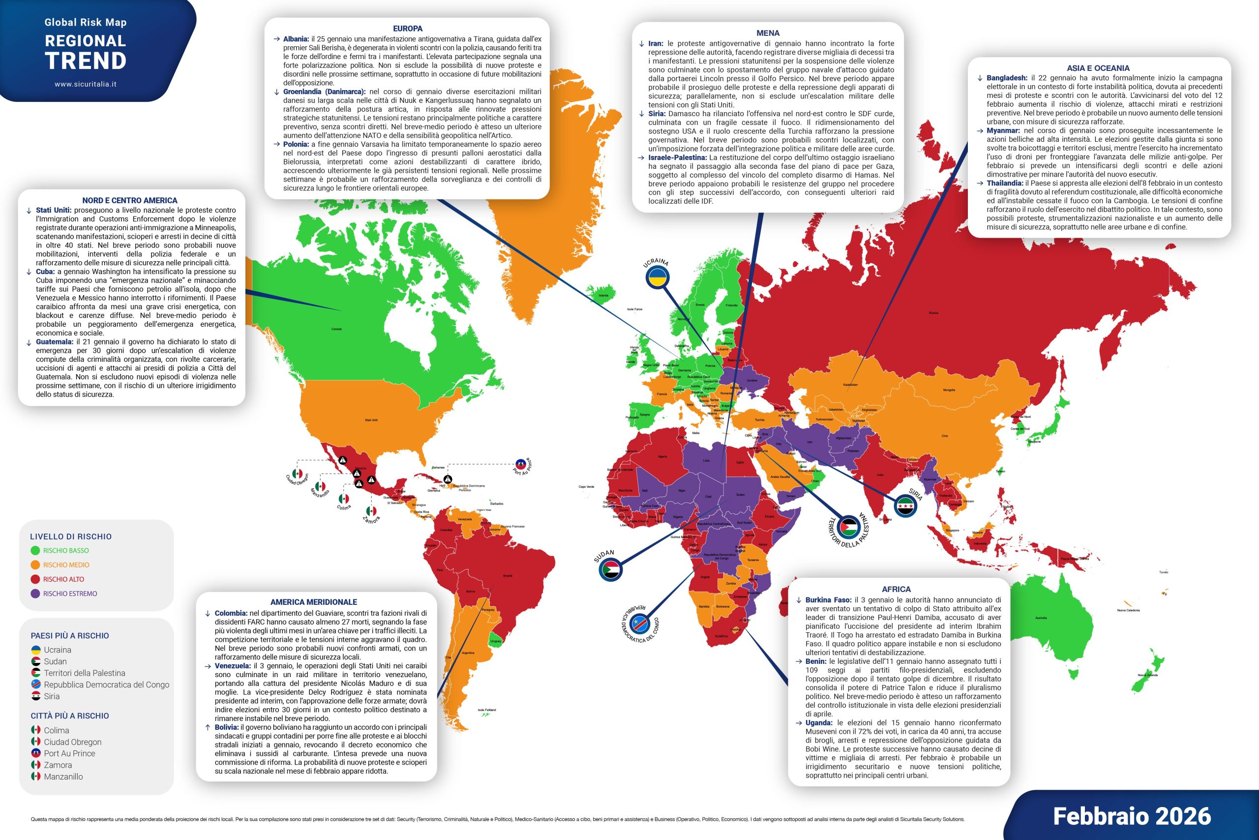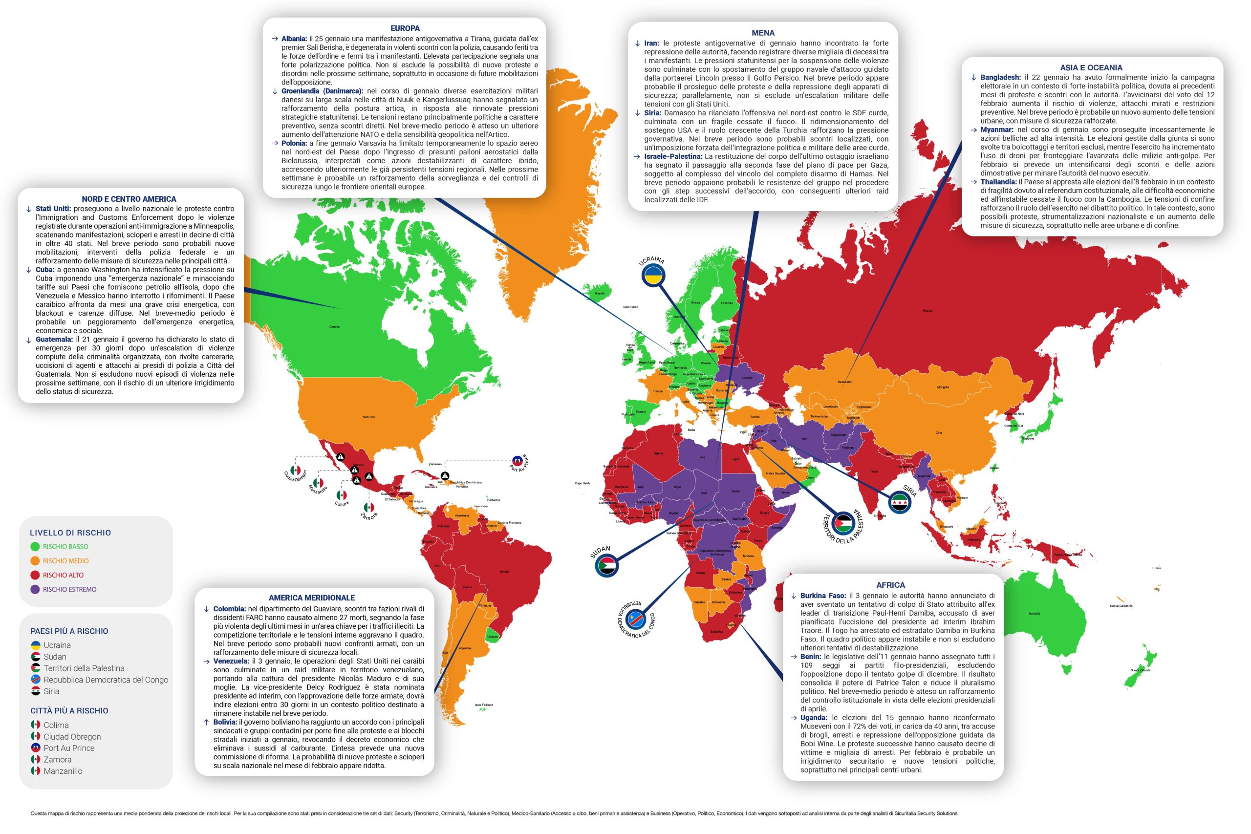 SCOPRI DI PIÙIl nostro Travel Security Operation Center monitora costantemente i rischi potenzialmente impattanti sul personale viaggiante. Consulta e scarica la nostra Global Travel Risk Map, aggiornata mensilmente, e contattaci per avere gratuitamente una versione cartacea.