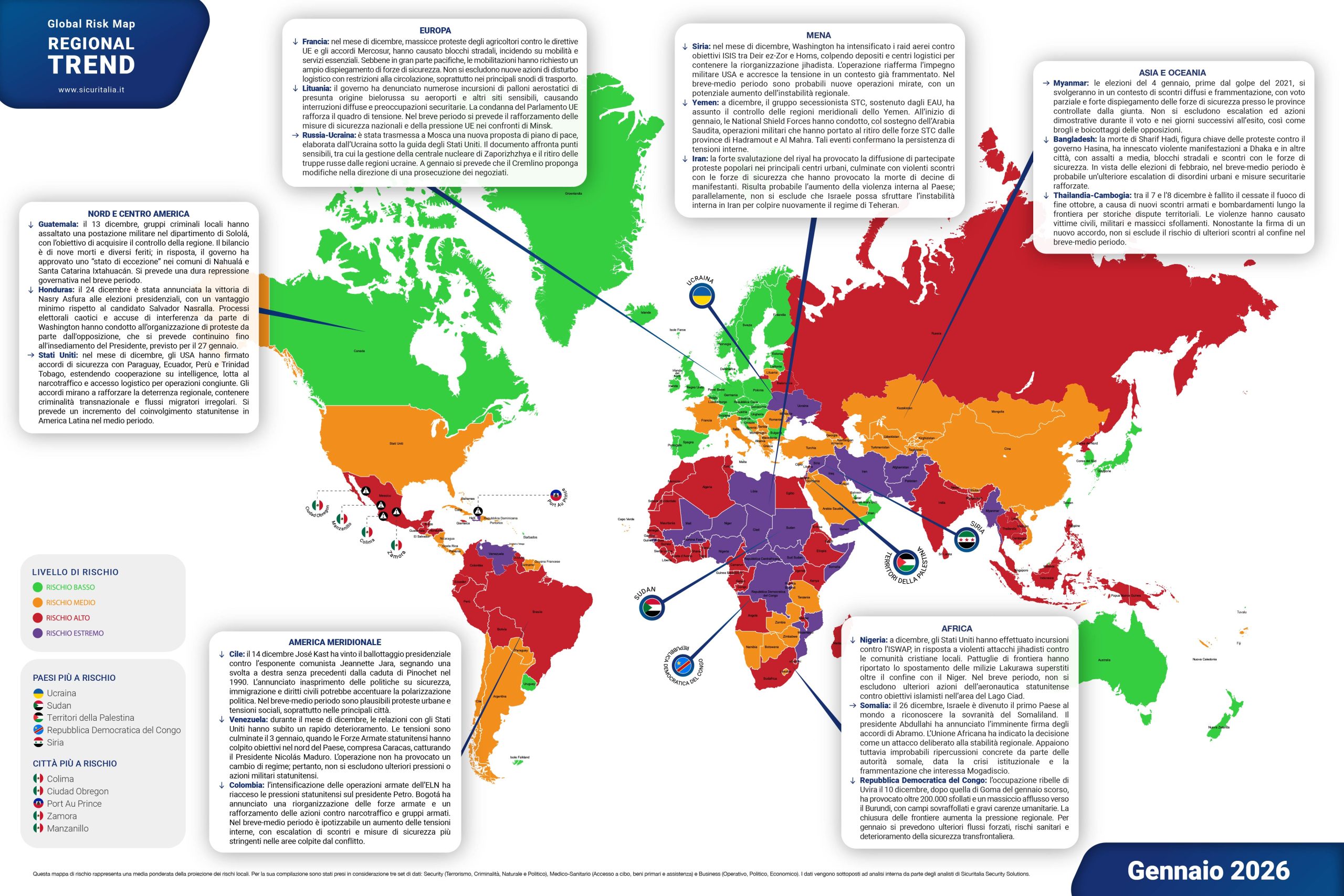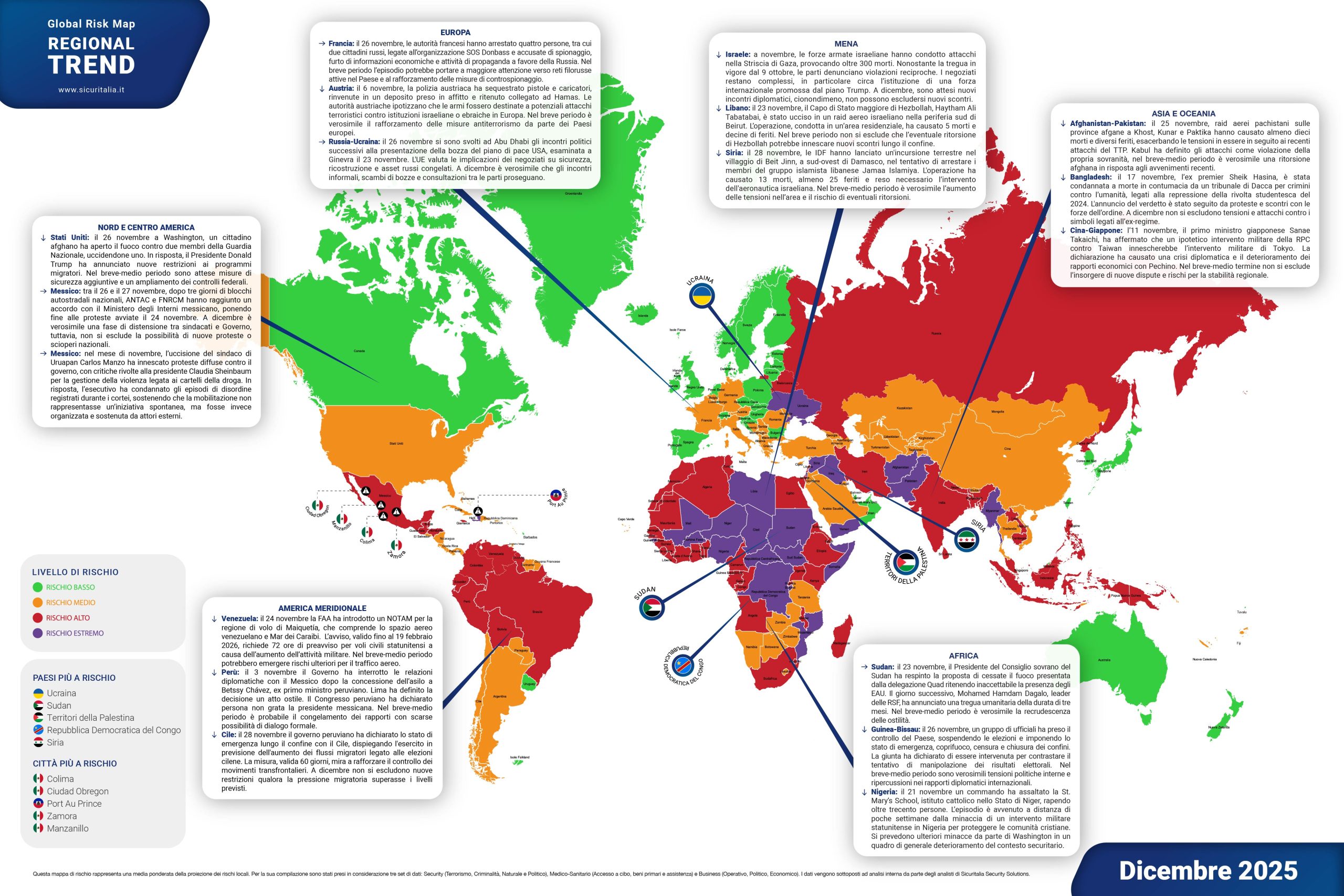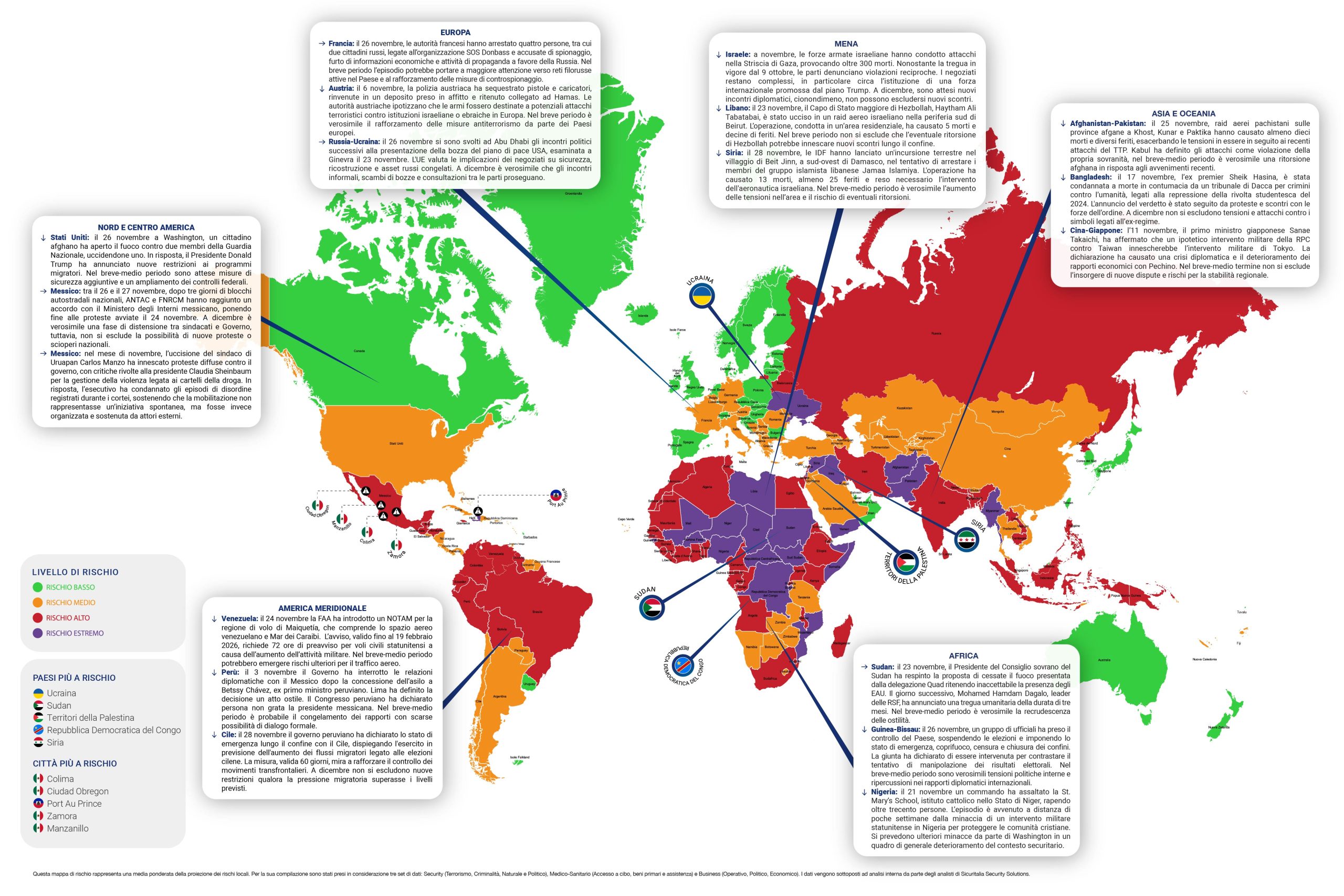 SCOPRI DI PIÙIl nostro Travel Security Operation Center monitora costantemente i rischi potenzialmente impattanti sul personale viaggiante. Consulta e scarica la nostra Global Travel Risk Map, aggiornata mensilmente, e contattaci per avere gratuitamente una versione cartacea.